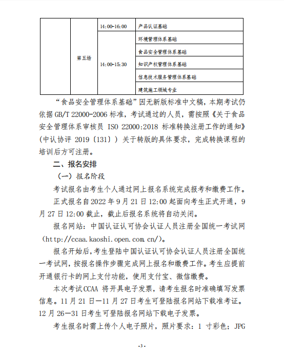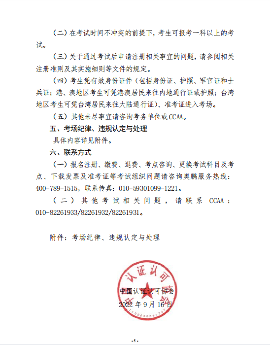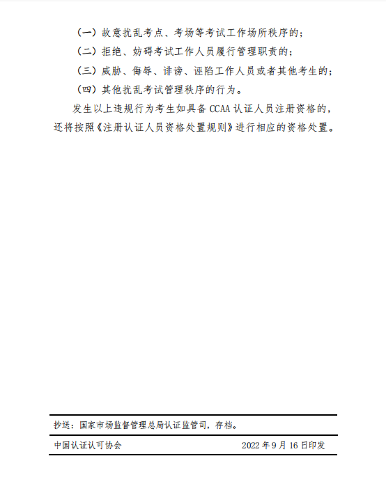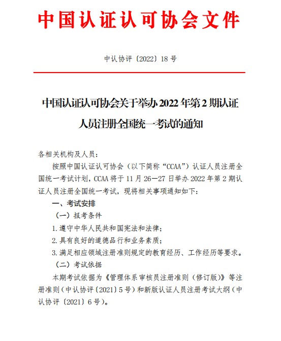 中国认证认可协会关于举办2022年第2期认证人员注册全国统一考试的通知